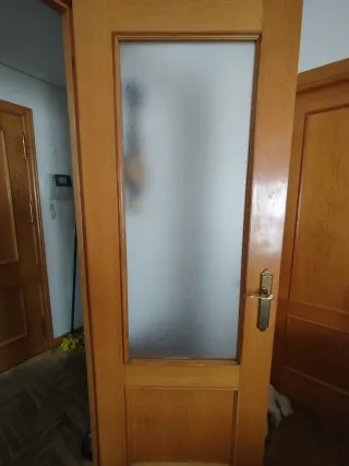 se venden 6 puertas de madera color roble en perfecto estado, 2 de ellas con cristal. Se entregan sin el marco y sin jambas 20€ la unidad, 4 abren hacia la izquierda (una de ellas con cristal) y 2 abren hacia la derecha ( de ellas con cristal). la puerta del baño mide 62 de ancho y 2,01 de alto.