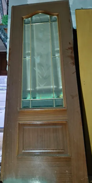 Conjunto de dos puertas simples y tres dobles de mobila antiguas con cristales emplomados.a una de las dobles le falta un cristal.pero es un cristal sin dibujo ni nada rl cual es fácil de conseguir. - Diseño clásico con molduras. - Marco de madera oscura. - Cristales translúcidos. Precio por unidad: -puerta simple: 60€ Medidas:80x2'10 -puerta doble 120€. Medidas:1'20x2'19