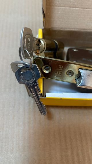 Cerradura Yale para puertas madera llaves dorado