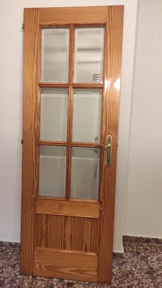 Se venden puertas de madera con paneles de cristal. El precio es por unidad. - Diseño con 6 paneles de cristal. - Acabado en madera de pino.