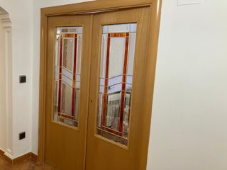 Juego de puertas interiores de madera de roble con detalles de cristal. - Diseño clásico con paneles de madera. - Cristales decorados con motivos florales. - Acabado barnizado brillante. - 6 varias puertas enteras madera - 1 normal con cristales - 1 doble cistrales - corredera empotrada con cristal de roble y en buen estado de mantenimiento y conservación varias medidas de hojas de 72 cm, 62, ... con marcos incluidos precio por puerta el comprador tiene que pasar a desmontar y llevarse por sus medios