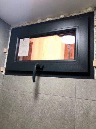 Vendo ventana PVC color antracita. La ventana esta nueva, es perfileria d marco de 70mm con 5 camaras. El herraje es perimetral a toda la hoja. El vidrio es triple con control solar y bajo emisivo, y es mate ideal para wc. Sus dimensiones son 100 cm ancho x 100cm alto.