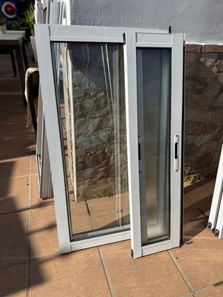 - Vendo 4 ventanas de aluminio blancas con persianas incluidas (una de las ventanas, al ser doble, no tiene persiana y el precio sería 60 €) De 1,48 × 1,33 cm (con marco y tambor) Cada ventana con persiana serían 70 € - 1 ventana de baño De 1,34 × 55 cm por 50 € - 1 puerta salón corredera con persiana incluida De 2,31 × 2,35 cm por 75 € - 1 puerta cocina al tendedero De 2,13 × 89 cm por 60 € Todas en buen estado. Tendrían que pasar a recogerlas en el mes de febrero, la fecha exacta aun no puedo decirla ya que me la tienen que dar a mí cuando vengan a ponerme las nuevas.