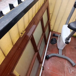 PUERTA DOBLE DE SALÓN DE MADERA CON CRISTAL – BUEN ESTADO Vendo puerta doble de salón de madera con cristal translúcido decorado, en muy buen estado. Medidas por hoja: – ancho: 72,5 cm – alto: 203 cm Incluye tapajuntas (7 cm) y herrajes. Puerta robusta y de buena calidad, ideal para salón o separación de estancias. Deja pasar la luz manteniendo privacidad. Se vende por reforma de vivienda. Precio: 150 € (negociable) Posibilidad de vender más puertas del mismo piso si interesa. Recogida en Vélez-Málaga.