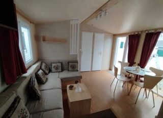 Mobilhome de ocasion, estilo frances, de 36m2 distribuido con un salon, cocina, dos dormitorios, baño , ducha y amueblada , con doble cristal climatizado en todas las ventanas con persiana Aire climatico en los dos dormitorios baño y salon Precio negociable