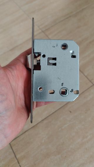 Picaporte unificado modelo 270. Distancia 70 mm Entrada 50 mm. Canto redondo. Reversible. Acabado niquelado