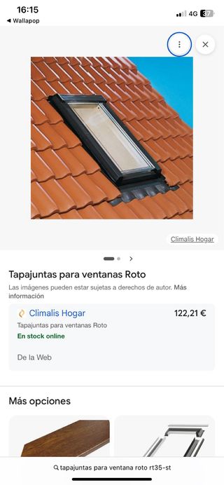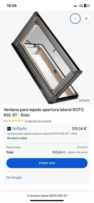 Maravilla de ventana para tejado tipo VELUX (de una marca alemana aún mejor: ROTO) , modelo RT35-ST, de apertura lateral, por lo que vale para salir al tejado (mantenimiento, etc). Abre a izquierdas mirando desde dentro. el precio es ventana Y TAPAJUNTAS, que los venden aparte (+122€!) : yo lo regalo, ese es mi descuento! primerísima marca alemana. Valen un pastón. En madera de pino al interior y aluminio al exterior, una super ventana de 1ª calidad 👌 Ver aquí fotos de características , o en internet xa más detalles técnicos (Maydisa.com). - Modelo R35-ST - Marca ROTO -dim. exterior hoja: 56x110cm [ver última foto o internet