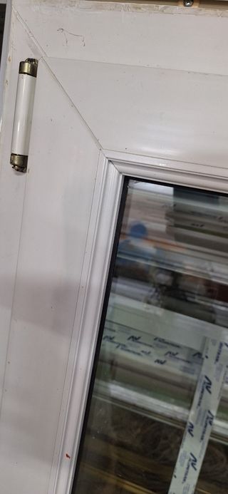 Ventana de PVC de Doble Hoja Oscilobatiente en color rojo. Tiene Doble Cristal con Cámara de Aire de la Marca Teclux. Medidas: -Altura 65cm. -Anchura 139cm. de luz de hueco. -Grosor 7cm. Marco de PVC con 7 cm. de Grosor y un Vierteaguas de otros 8 cm. más. Tiene un golpe en la zona interior del marco como se ve en alguna foto.