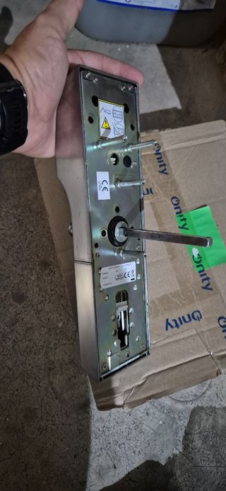 Media cerradura de seguridad de la marca Onity.Funcionando perfectamente,cambiada por actualización a proximidad,varias disponibles. Fabricada en metal plateado con un diseño moderno y elegante. - Mecanismo de cierre. - Tubo de salida metálico.