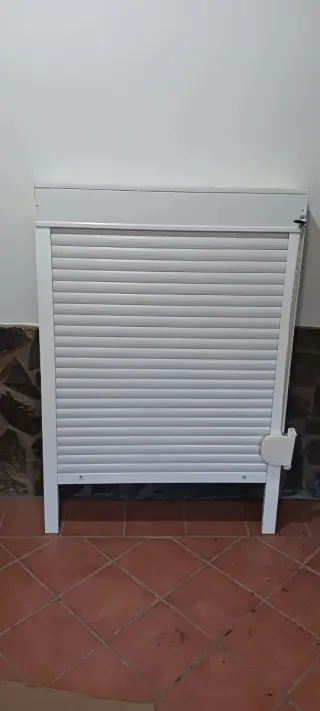 Persianas enrollables de aluminio en color blanco. Ideales para ventanas - Material: Aluminio. - Color: Blanco. - Mecanismo de enrollar.