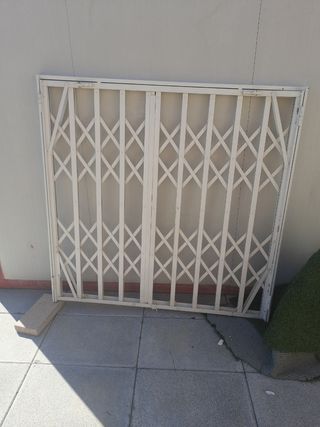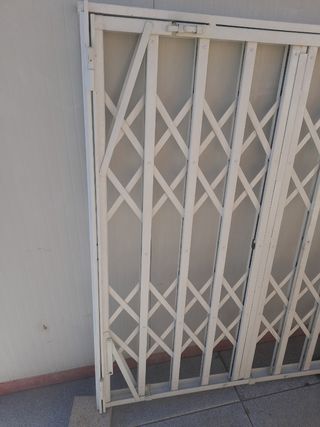 Reja de ballesta o extensible en color blanco y cierre con llave. - Ideal para ventanas. - Material resistente. - Fácil instalación. - Con dos llaves. - Se puede plegar. - Medidas (largo*ancho): 1'45*1'10m. Más productos en mi perfil. Hago lotes para rentabilizar gastos de envío. Venta en persona o envíos a través de la app.