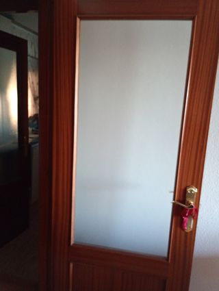 Preciosa pareja de puertas de interior de madera maciza. Una con cristal decorado y otra lisa. Ambas en buen estado. Se venden por reforma en la vivienda . Medidas 62.5 x 199.5 x 3.5 - Puertas de madera de alta calidad. - Diseño clásico y elegante. - Una puerta con cristal ácido grabado. - Perfecto estado de conservación.