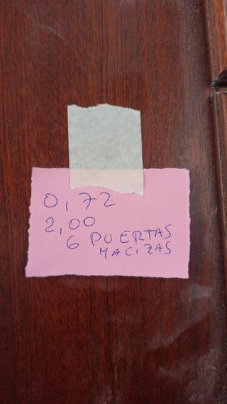 Se venden dos puertas de interior de madera maciza. Perfectas para dar un toque cálido y natural a tu hogar. - Puertas de interior. - Madera maciza. - Color marrón claro. - 2 unidades. - Incluyen herrajes dorados. - Fabricadas en madera de alta calidad. Cada unidad se vende por 50 euros - Medidas 202 cm X 72 cm