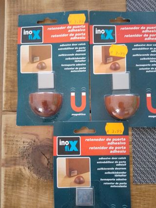 Lote de7topes magnéticos para puertas. Son de madera, con un diseño sencillo y elegante. - Ideales para evitar golpes y ruidos. - Fácil instalación adhesiva. - Material: Madera y metal. - Magnéticos.10€ todos.