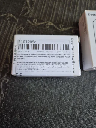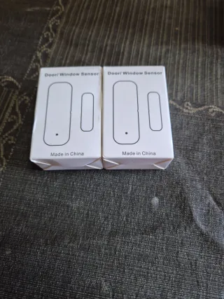 Pack de dos sensores para puertas y ventanas. Son compactos y discretos. - Fabricados en China. - Diseño blanco.