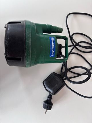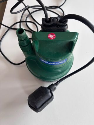 Bomba de agua de la marca Garden-Fer, con flotador y enchufe. - Color verde y negro. - Incluye cable de alimentación. - Diseño compacto.