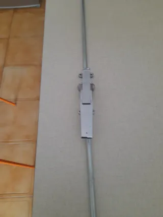 Cerradura de seguridad para ventanas, fabricada en metal.largo total 161 cm. - Mecanismo de barra. Y soportes - Acabado plateado.