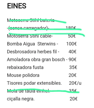 Se venden herramientas, tanto eléctricas como manuales, pregunta el precio de la que te interesa. - Algunas herramientas son de marcas reconocidas como Stihl y Bosch.