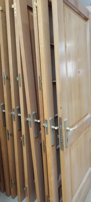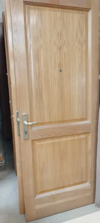 Conjunto de puertas de roble con un diseño clásico y elegante. Hay una puerta de entrada y 10 puertas de paso, todo en perfecto estado. 50 euros por cada una. - Acabado en madera de roble natural.