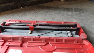 Herramienta para cortar azulejos de forma precisa. Ideal para trabajos de alicatado. - Base naranja. - Guías metálicas. - Mango rojo. medidas corta raas hasta 600 mm.