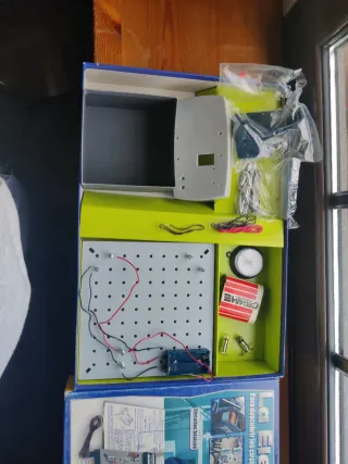 Kit de experimentos de electricidad de Clementoni. Permite descubrir los circuitos básicos y el timbre electromagnético. - Incluye manual con explicaciones. - Fomenta el aprendizaje de principios de electricidad. - Diseñado para actividades divertidas y seguras.