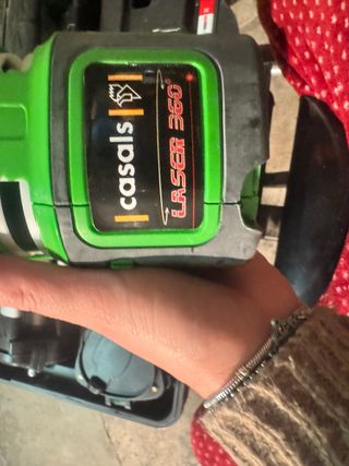 Nivel láser de la marca Casals, modelo Laser 360. Diseñado para mediciones precisas. - Carcasa de color verde y negro. - Etiqueta con logo Casals y Laser 360.