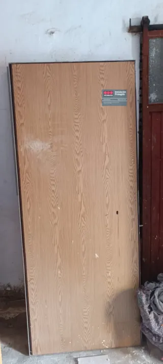 Puerta exterior de madera con un diseño clásico de paneles. Cuenta con un pomo y cerradura. - Material: Madera - Color: Natural - Incluye pomo y cerradura Hace falta barnizarla, tengo llave Madera maciza Medida 2.02 x 82 La puerta está en Félix almeria