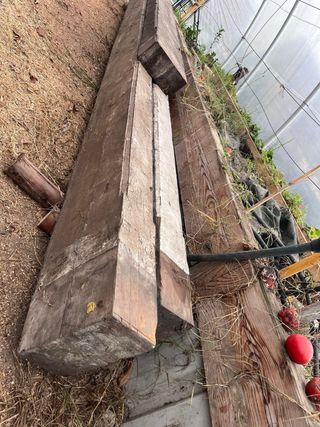 Se venden vigas de pino tea antiguas, perfectas para proyectos de construcción o decoración rústica. - Material: Madera de pino tea. - Estilo: Antiguo, rústico. 2 de 5 metros de largo 1 de2,50 m largo, ancho y alto 15 x 30 cm