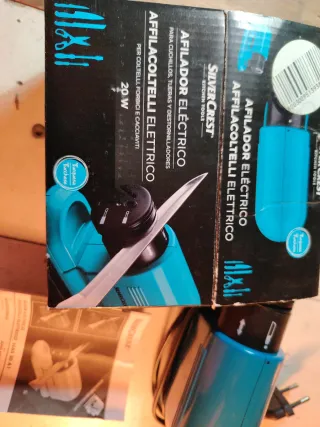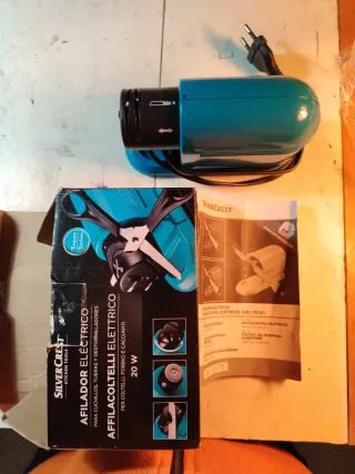 Afilador eléctrico SilverCrest para cuchillos, tijeras y destornilladores. Ideal para mantener tus utensilios de cocina y herramientas en perfecto estado. - Potencia: 20 W - Color Turquesa. - Nanual de instrucciones - Muy poco uso