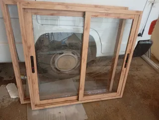 Ventana correderade color pino. cristal 4mm. Lote de 3 ventanas.