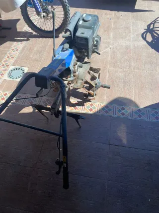Máquina cultivadora de gasolina con motor. 12 cv - Color azul y negro. - Ruedas para facilitar el transporte. - Manillar ajustable.