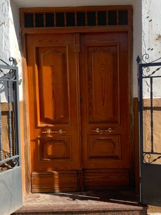 Puerta de calle de madera maciza de dos hojas. Ideal para exteriores. - Material: Madera maciza. - Diseño: Dos hojas. - Estilo: Clásico.