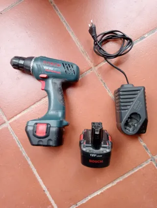 Atornillador Bosch profesional de 12V, ideal para trabajos de bricolaje y profesionales. Incluye cargador y baterías. LAS BATERÍAS NO FUNCIONAN. - Atornillador Bosch profesional - Voltaje: 12V - Incluye cargador
