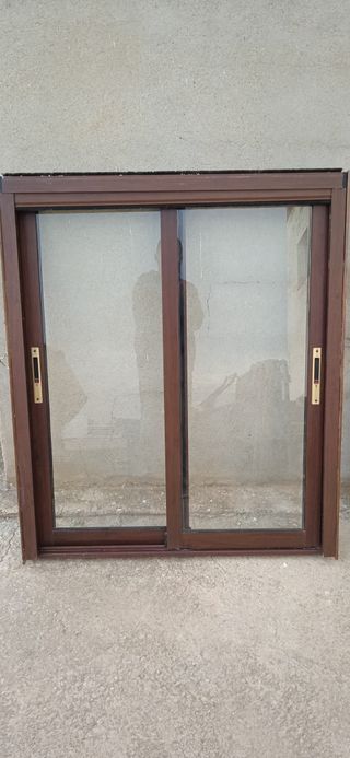 Ventana de aluminio marrón con mosquitera. No hago envíos. Recogida aquí.