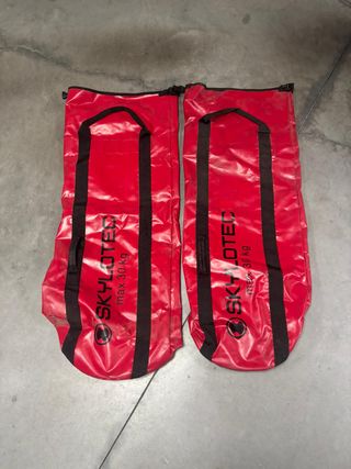 Se venden dos bolsas SKYLOTEC de color rojo, ideales para diversos usos. Esta bolsa multiusos, con un volumen de 40 litros y una capacidad de carga de 30 kg, ofrece espacio para herramientas, mosquetones y cuerdas. Dos bucles de transporte permiten un transporte cómodo. Para que nada pueda caer de la bolsa, se cierra con un cordón. - Color: Rojo - Marca: SKYLOTEC - Capacidad máxima: 30 kg por bolsa - Diseño multiusos 25€ una bolsa. 50€ las dos bolsas.