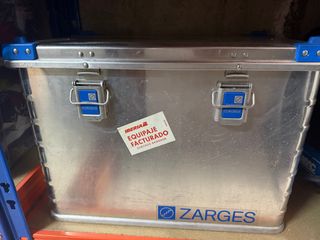 Robusta caja de transporte ZARGES fabricada en aluminio, diseñada para ser apilable. - Material: Aluminio. - Diseño apilable. - Cierres de seguridad. - Asa de transporte. Adecuado para casi cualquier tarea de transporte donde la ligereza y la estabilidad son importantes MEDIDAS: 600 x 350 x 400 (largo x ancho x alto) ESCUCHO OFERTAS