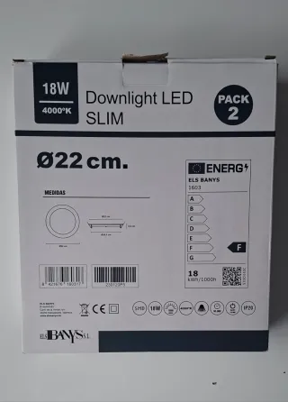 Pack de dos Downlight LED Slim de 22 cm y 18W de potencia con luz neutra de 4000K. - Diámetro: 22 cm. - Potencia: 18W. - Temperatura de color: 4000K (luz neutra). - Tipo: Downlight LED Slim. - Cantidad: Pack de 2 unidades.