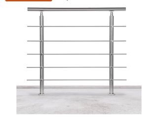 Barandilla de acero inoxidable, ideal para escaleras. - Fabricada en acero inoxidable. - Diseño con cinco barras horizontales. - Acabado pulido brillante. - 1m de largo y 1,06 de alto Esta nueva, solo la abrimos y nos dimos cuenta que no nos servia. Costó 66€