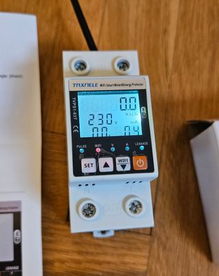 Contador inteligente para monitorizar el consumo eléctrico. Permite controlar el uso de energía a través de la aplicación Tuya o Smartlife. Funciones: 1. Protección contra bajo voltaje 150V-190V (ajustable) 2. Protección contra sobretensión 250V-300V (ajustable) 3. Protección contra sobrecorriente 1A-63A (ajustable) 4. Tiempo de reconexión (retraso en el tiempo): 5 s-90 s 5. Protección contra fugas eléctricas: 10-99 mA (ajustable) 6. Rango de visualización de potencia: 0-99999,9 kW/h 7. Medidor de voltaje 8. Amperímetro 9. Medidor de energía 10. Temporizador