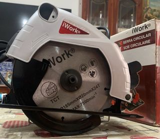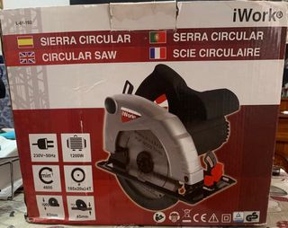 Sierra circular iWork en buen estado. Ideal para trabajos de bricolaje. -230V~50Hz - Modelo: iWork - Potencia: 1200w - Diámetro de corte: 185mm - Velocidad: 4800 rpm - Incluye disco de corte TCT