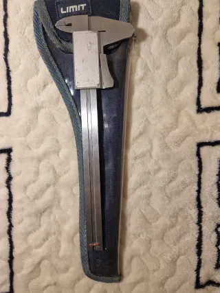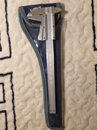 Pie de rey de la marca Limit, ideal para mediciones precisas. Se encuentra en su funda protectora. - Fabricado en metal. - Incluye funda de tela y plástico.