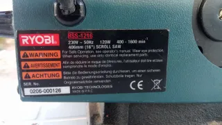 Sierra de marquetería Ryobi de 406mm (16 pulgadas) con velocidad variable. Ideal para trabajos de precisión en madera. - Marca: Ryobi - Modelo: 406mm (16) Variable Speed - Tipo: Sierra de marquetería