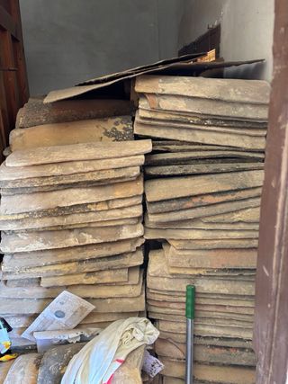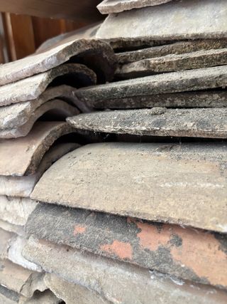 Conjunto de tejas antiguas de barro, perfectas para proyectos de restauración o decoración rústica. - Material: Barro cocido. - Aspecto envejecido y auténtico. - Ideal para tejados o elementos decorativos. Precio por unidad. Cantidad: 600 aprox. con posibilidad de mas.