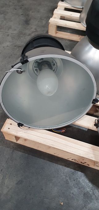 Vendo lote de 17 focos de nave industrial, hay 3 que falla la bombilla, el resto funcionan perfectamente, el precio del lote es de 400€, se vende el lote completo, no hago envíos.