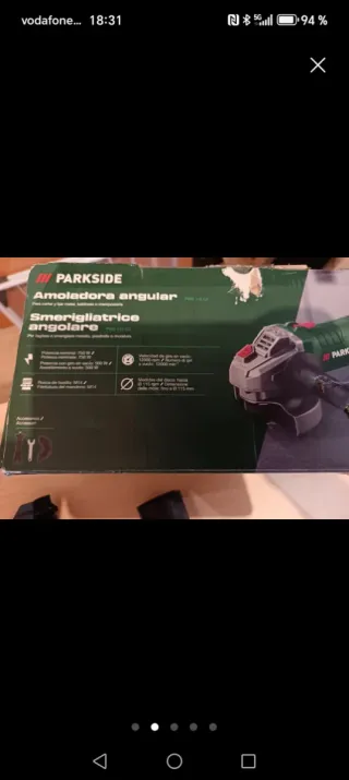 Radial Parkside de 1200W, en su caja original y sin usar. SÍN estrenar - Incluye disco de corte. - Empuñadura auxiliar. - Llave de montaje. - Protector de disco. - Manual de instrucciones. NO NEGOCIABLE