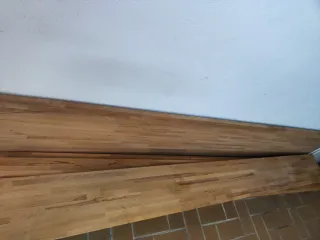 Tablón de madera maciza con acabado robusto. Tengo dos unidades (precio por unidad) - Medidas: 245 cm de largo, 60 cm de ancho y 3 cm de grosor.