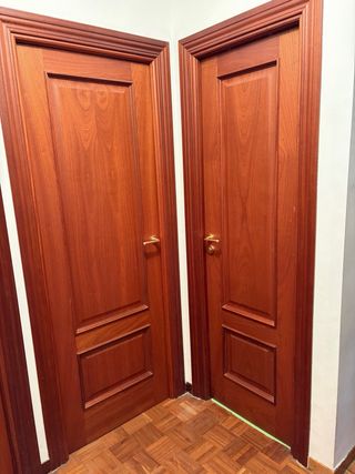 Puertas de madera maciza, con jambas y premarcos, varias medidas: - 2 de 70 cm de derechas - 2 de 70cm de izquierdas - 1 de 60cm de derechas - 1 de 60cm de izquierdas - 1 de 70cm con cristal de derechas - 1 de 70cm con cristal de izquierdas Se hace precio si se llevan todas.