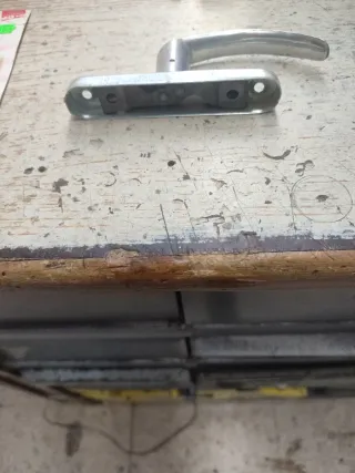 Manilla de puerta plateada con un diseño curvo y elegante. Ideal para dar un toque distintivo a tus puertas. - Material: Metal - Color: Plateado - Tengo muchas