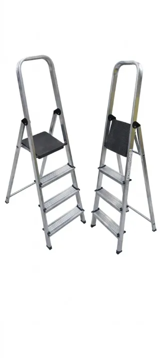 Escalera de aluminio con cuatro peldaños, práctica para el hogar. - Precio original 35€ - Totalmente nueva - Diseño plegable. - Superficie antideslizante en los peldaños.