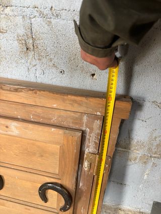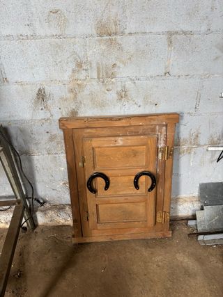 ventana pequeña para un garaje o merendero los cristales son finitos lo suyo sería poner otros - Puertas con tiradores en forma de herradura. - Acabado en madera natural
